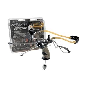 The Pro Diablo Ii Is A Professional Grade Slingshot. Includes A 3-Piece Stabilizer, An Adjustable Sight And A Redesigned Soft Touch Grip. Wrist Brace, Weighted Stabilizers, Magnum Power Bands, Full Shooting Guide.