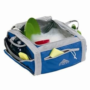 This is a great camp sink. Before we left on our weekend trip we loaded the sink up with our entire Coleman 24-Piece Enamelware Dining Kit ; Cutlery Set, plus a fry pan, and two small pots. The fry pan handle stuck out a little after it was zippered shut, but the sink kept everything together. After meals we'd toss our dirty dishes and cookware into the sink with some water and soap. It made keeping dishes ready for the next meal very easy. We'll also use this to store our camp kitchen gear when it's not in use. Before I used the sink I was thinking it may have been an unnecessary purchase. After using it, I recommend buying this.
